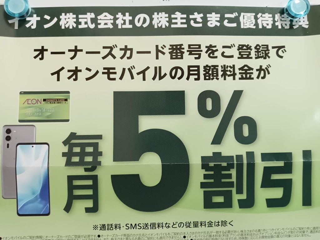 イオン株主優待は、実はイオンモバイルにも適用され、通信料金の割引を受けることができます。